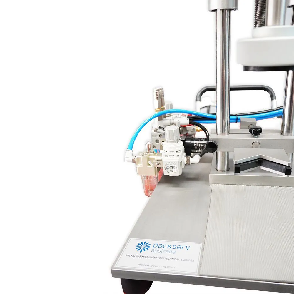 The PCM-1 Benchtop Capper is a durable, cost-effective semi-automatic solution for accurate, efficient closure tightening. It handles caps from approximately 3/8 in to 5 in using interchangeable or custom chucks and can tighten trigger, pump, and spray closures when paired with the PTP-7. Simple controls allow fast changeovers, delivering 10–20 units per minute with auto-activation and a universal container guide.