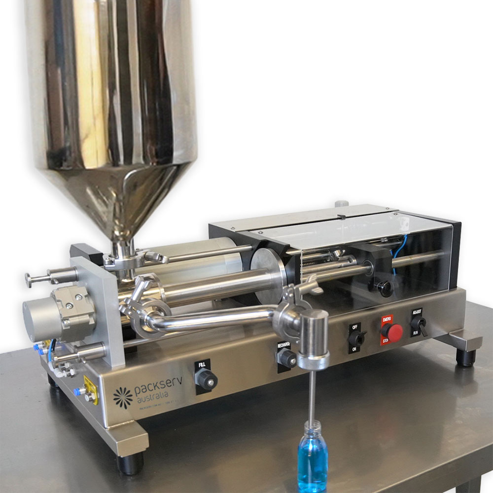 The Packserv Single Head BUF Liquid Filler is a compact, semi-automatic filling machine for personal care applications. Its heavy-duty, all-pneumatic design is reliable, easy to clean and ideal for bench-top use. It has an easy-to-use volume adjustment to manage production output.